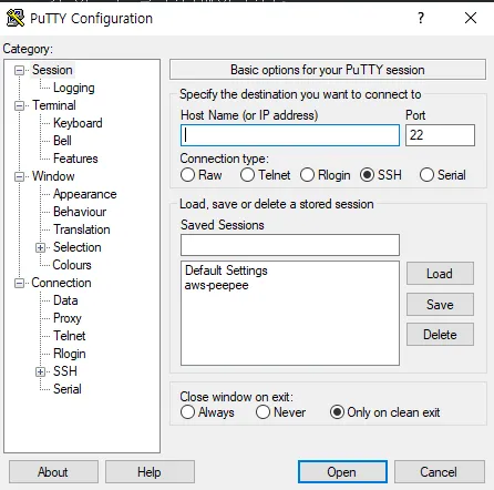 Port는 22로 그대로 두고 Connection type은 SSH 이다.