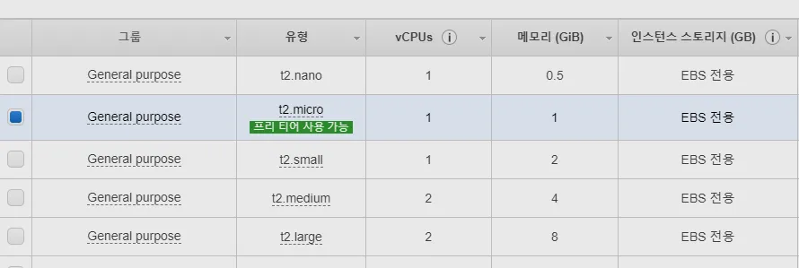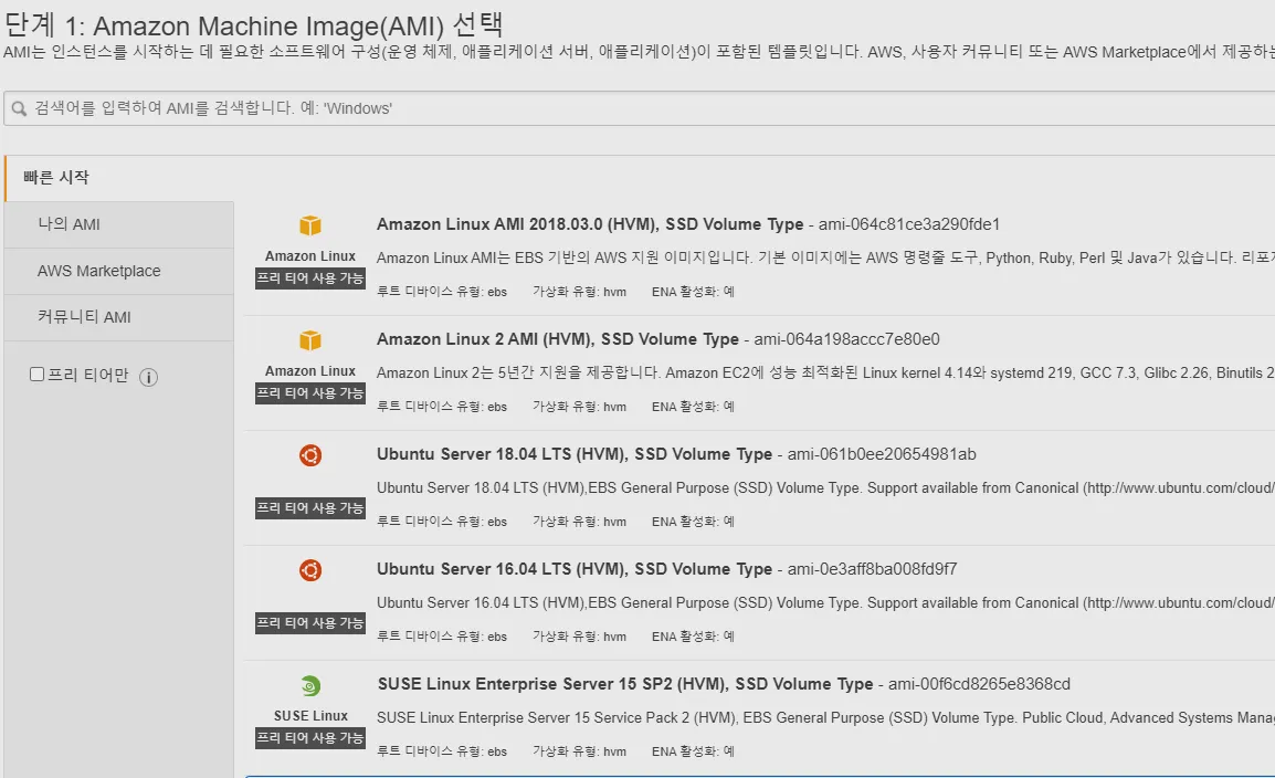그리고 운영체제를 선택할 수 있는데 프리 티어가 가능한 운영체제와 그렇지 않은 것이 잘 나와있으니 필요한 os로 선택하자.