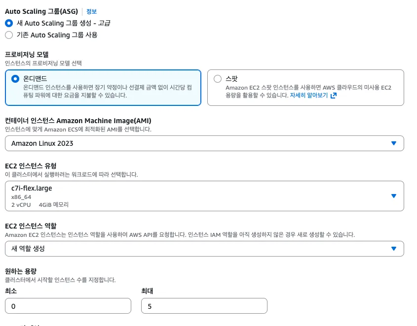 - ECS Managed Instance 선택 시: AWS가 자동 최적화