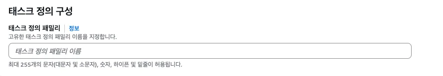 이후 Task Definition(작업 정의) 를 작성하여 ECS에서 컨테이너를 실행할 수 있다.