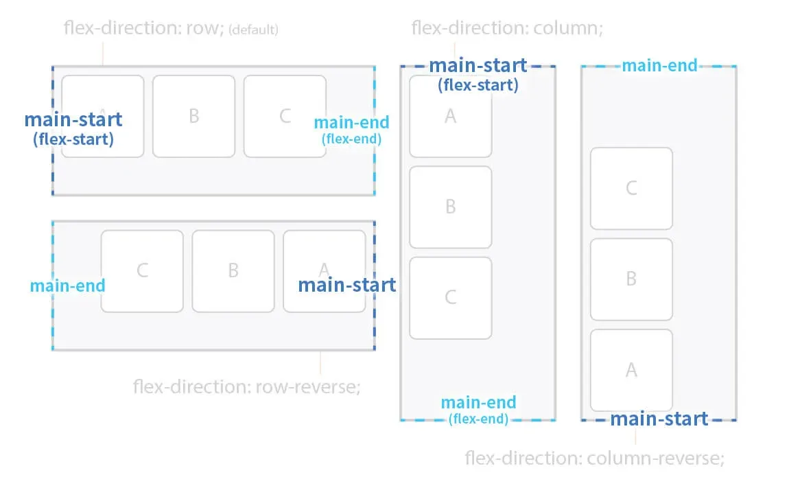 축의 시작점(flex-start)와 끝점(flex-end)을 지칭한다. 이 역시 상대적인 개념이다.