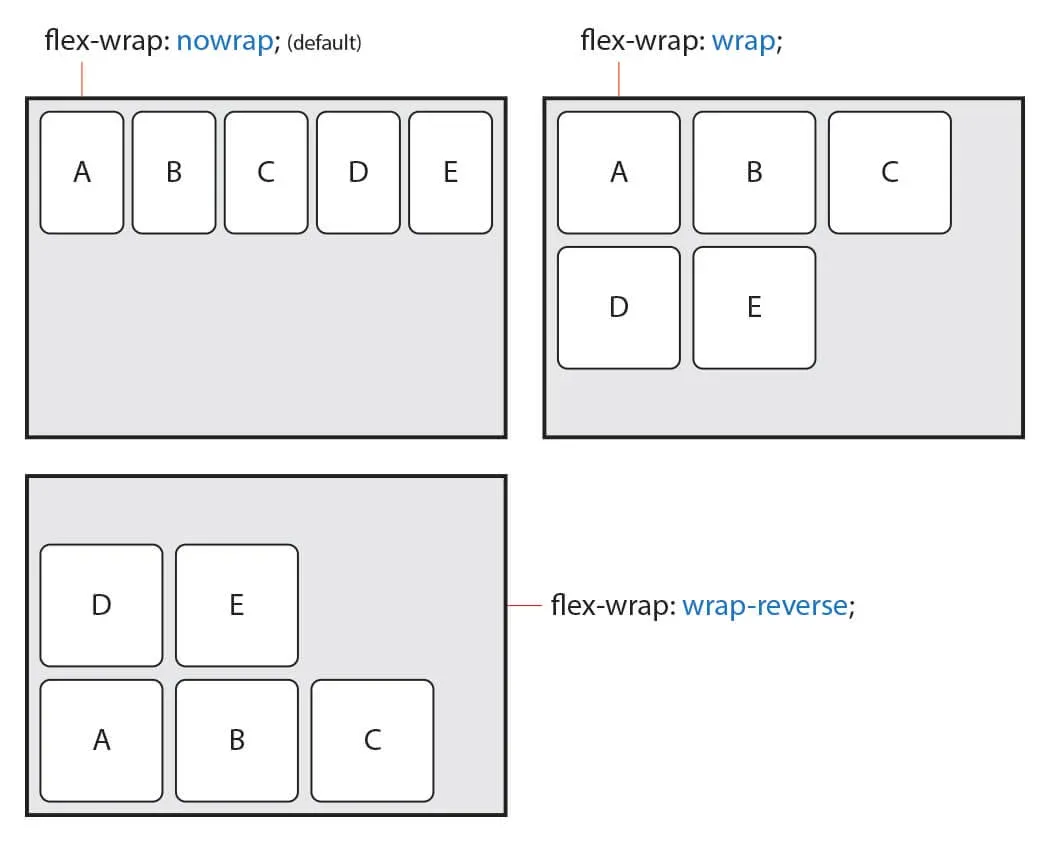 기본적으로 items는 한 줄로 표시되며 줄바꿈이 되지 않는다. 줄 바꿈이 되도록 하려면 wrap으로 지정해야한다.