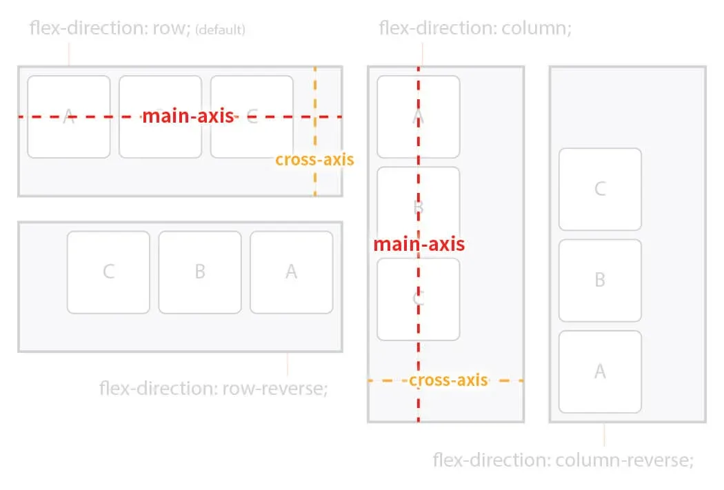 row: 수평축으로 표시 (default)row-reverse:row의 반대 축으로 표시column: 수직축으로 표시column-reverse:column의 반대 축으로 표시