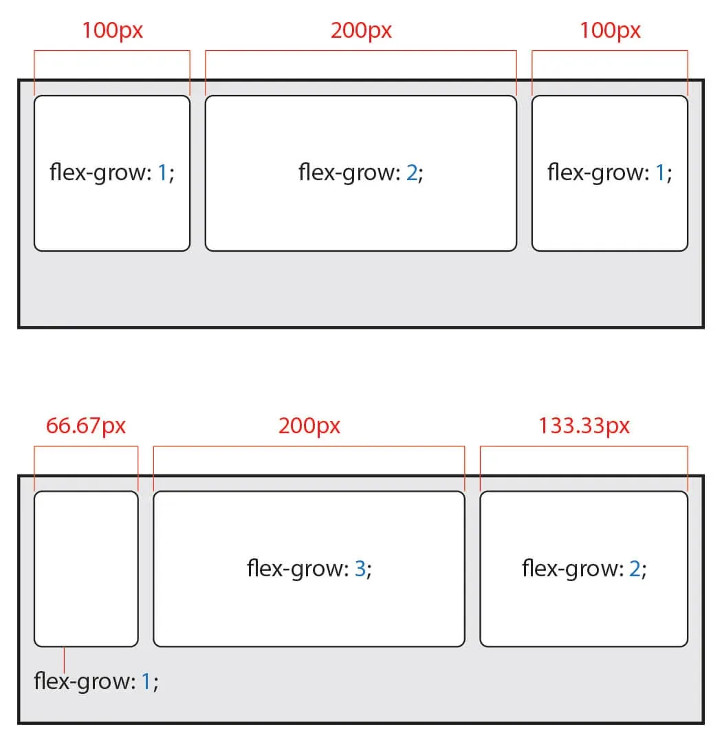 flex-grow: 증가 너비 비율 설정 (default 값은0)flex-shrink: 감소 너비 비율 설정flex-basis: item의 기본 너비 설정(auto)