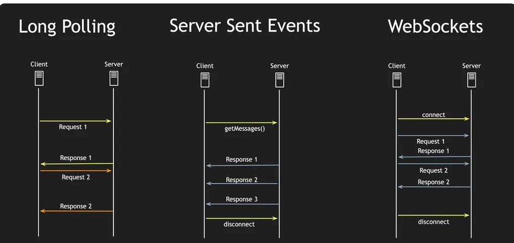 | Polling | SSE | WebSocket |