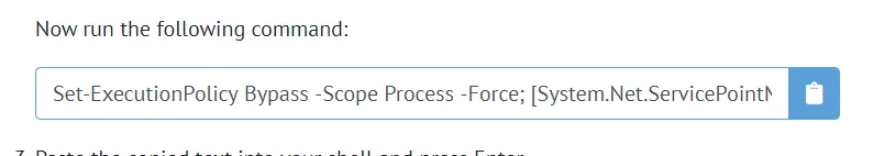 command문을 복사하고 Windows에서 Power Shell을 관리자 권한 으로 실행하여 복사한 명령어를 입력하면 chocolately가 설치된다.