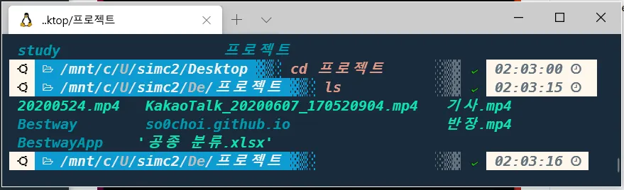 커스텀이 끝난 내 터미널.. 너무 예쁘다. 여기서 작업을 안 할 수가 없다.