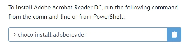 Acrobat Reader 설치 페이지에 들어와 설치 커맨드를 찾았다. Powershell에서 위 명령어를 입력하기만 하면 Acrobat Reader를 공식 홈페이지에 들어가 설치 파일을 다운 받지 않아도 설치할 수 있다! 이 외에도 Git, Chrome, Python 등 다양한 패키지가 올라와있다.