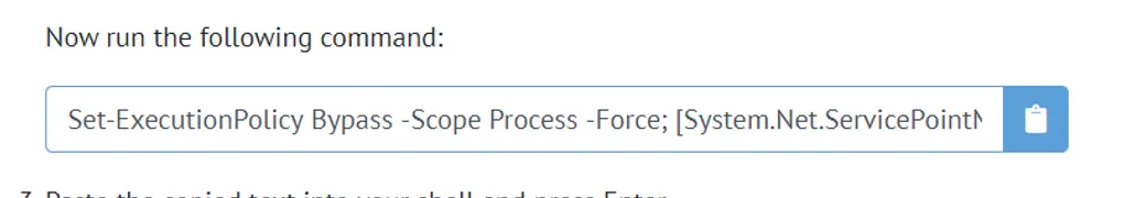 command문을 복사하고 Windows에서 Power Shell을 관리자 권한 으로 실행하여 복사한 명령어를 입력하면 chocolately가 설치된다.