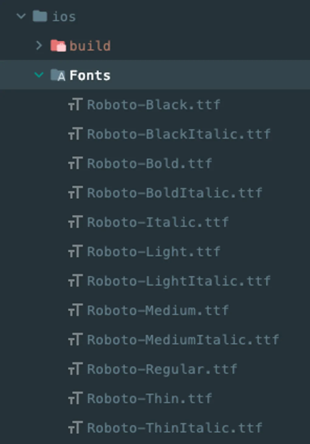 ios/Fonts 폴더를 만들어서 그 안에 폰트 파일을 복사한다.