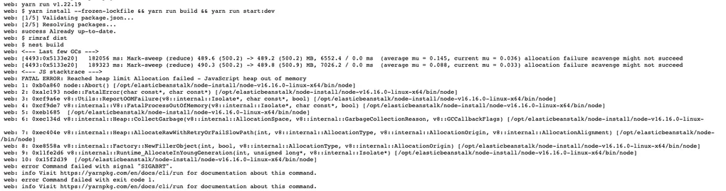 ElasticBeanstalk yarn 적용 및 Javascript heap out of memory 오류